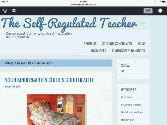 theselfregulatedteacher.com. We also author theselfregulatedteacher.com, our Kindergarten website for keeping our class parents informed. We post twice a week; we will send you a link through “Remind” so you can see what we’re learning and thinking about in Kindergarten.