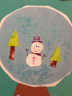 We’ve been busy creating more fabulous Winter Art this week. Here is our “Winter Snowmen at Night” inspired by Snowmen at Night (Caralyn Buehner and Mark Buehner) and the “Winter Snowman Collage Art Lesson” by Patti at Deep Space Sparkle. We painted our “snow” backgrounds on dark blue construction paper, then drew the snowmen with pastels using directed drawing instructions. The children love using pastels more than any other colouring tool because of the intensity and wide variety of colours. Instead of dusting our snowmen with glitter, we used Sparkle Mod Podge, which we purchase at Michaels Craft Stores. It dries quickly and gives a really nice finish when you want to add a little sparkle (and really, who doesn’t everyone want a little more sparkle in their lives? We can never get enough).