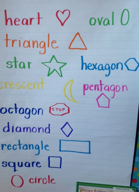 We started our next Math unit in Geometry. We brainstormed all the geometric shapes we know and read Brown Rabbit’s Shape Book by Alan Baker. We’re now starting to learn about the individual two and three dimensional shapes and their properties, beginning with circles and spheres.