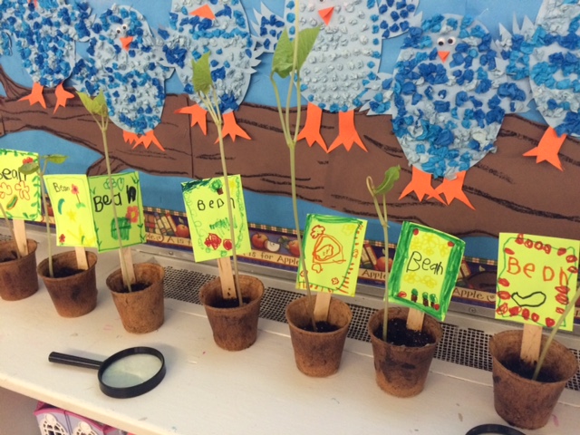 Our bean plants really took off while we were away, and some had reached significant proportions. We sent home the beans earlier this week as they were definitely ready for transplanting. The pots are compostable so can be planted directly into a garden bed. The beans could also be planted into a larger container at home. But regardless of location, the plants should be staked so the vine does not get twisted on itself. Happy growing!