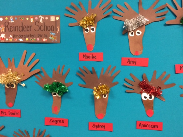 All of the Kindergarten participated in the Reindeer Games on Wednesday this week.  For the first time, Mrs. Campbell and I put all the children together in one classroom, and we spread over into the hallway and English Language Learning room.  We worked in small groups with children from both classes.  We’re so used to the rotations from Math Centres that transitions between the five activities went very smoothly.  The children’s self-regulation was excellent, img_2371considering some of them had stayed up late the previous evening making gingerbread houses.  Your child will have brought home everything they made over the past few days.  Thank you so very much to all the parents who came in to help us with our Christmas Centres.
