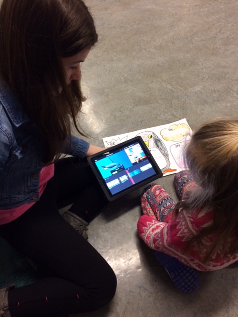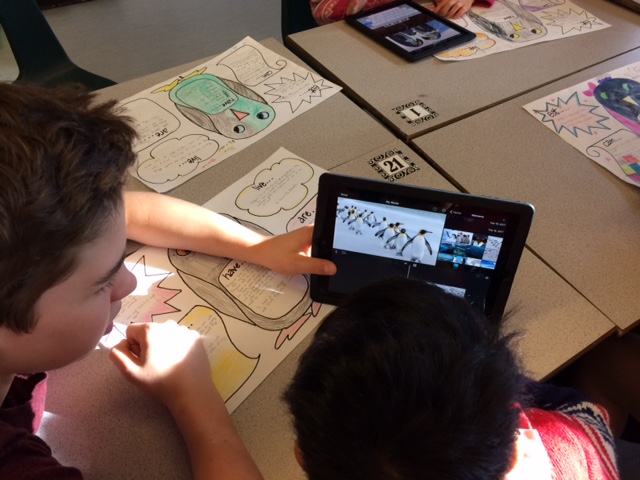 In the past few years we’ve used the app Book Creator on the iPad to create digital books about penguins, their habitat, young, appearance and food sources. Our Big Buddies would work with us to gather images from Google, write a brief descriptive sentence using a sentence frame and the Little Buddies would do a voiceover, reading the text aloud. This year we decided to take the same topic but use the app iMovie as our presentation platform. In her role as Technology Support Teacher, Cari also joined us on our first day of movie-making.