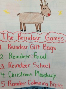 What do you get with 35 Kinders, ten parents helpers and two teachers who are crazy about Christmas? The Reindeer Games, of course!