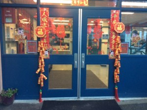 Our school entrance and hallways were beautifully adorned with decorations our parents brought back from China. Special wall hangings were created and shipped here to Canada for our school.