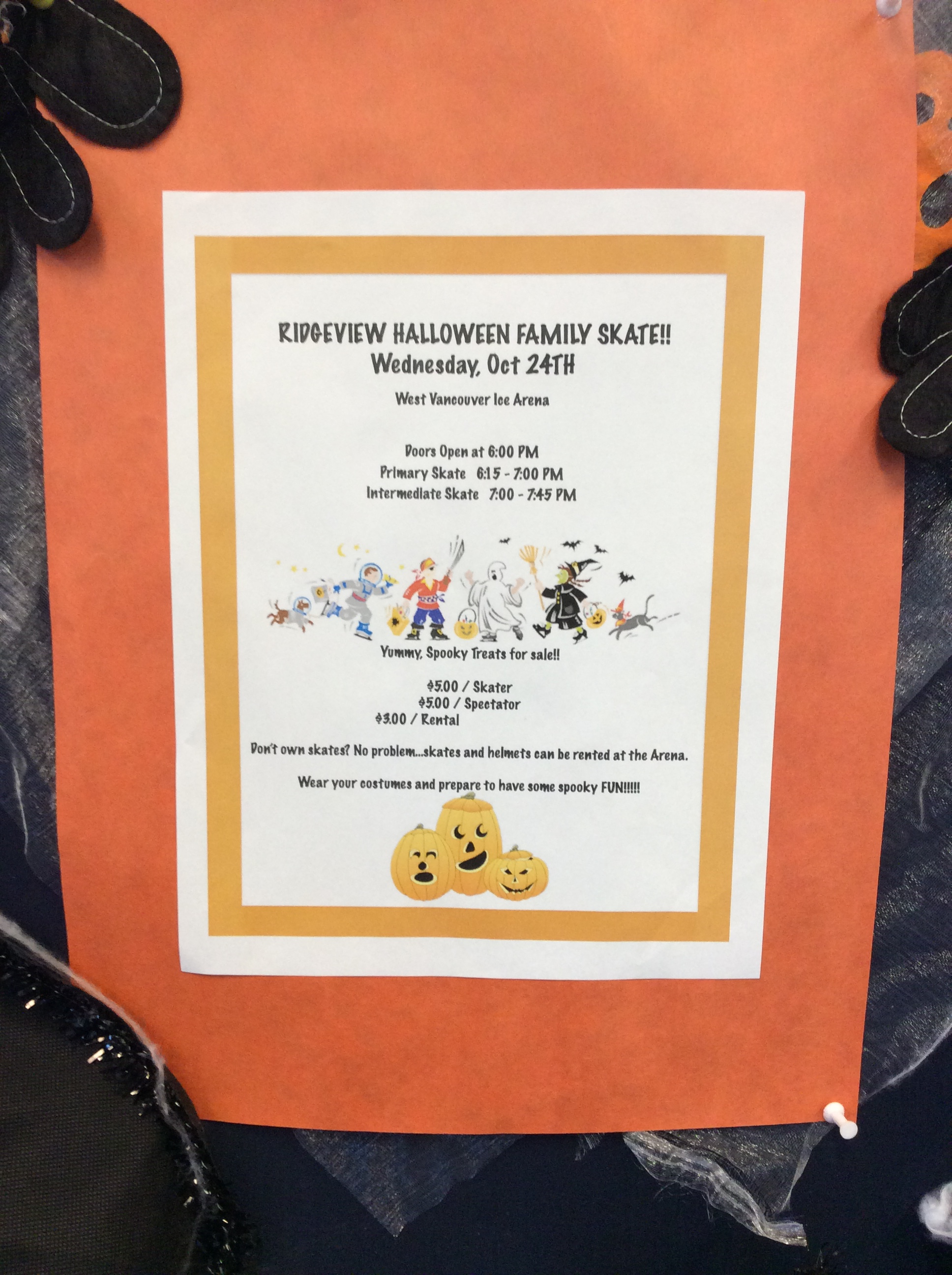 Wednesday, October 31 is Ridgeview’s Annual Hallowe’en Parade and Assembly. Parents are welcome to line the hallways and watch up parade through the school. Please do not ask your child to stop in the hallway for a photo – we don’t want to be separated from the rest of the parade. We sent home an orange notice on Thursday with all the details. We also sent it home via your Remind text.