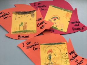 We’re a little behind in making our October self-portraits as duty called for us to make our Boho Birds, but we’re all caught up now and what a difference from September! We had fun drawing in the backgrounds. We reviewed our Big, Bright and Beautiful criteria for the children. Big means to fill your space, Bright means to use five colours or more and Beautiful is to do your personal best. Don’t you think the children did a great job? We were delighted for sure.