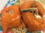 Speaking of fresh, we had an experiment go wrong this week. We’ve been looking after this sugar pumpkin for the past couple of weeks and thought we’d carve it for a baby jack-o-lantern. Whoops! It completely caved in and all of the innards came swooshing out all over the table when we tried to lift it up. The children were very keen to look at it and give it a poke. The pumpkin smell was a little troubling for the first part of the day.