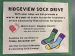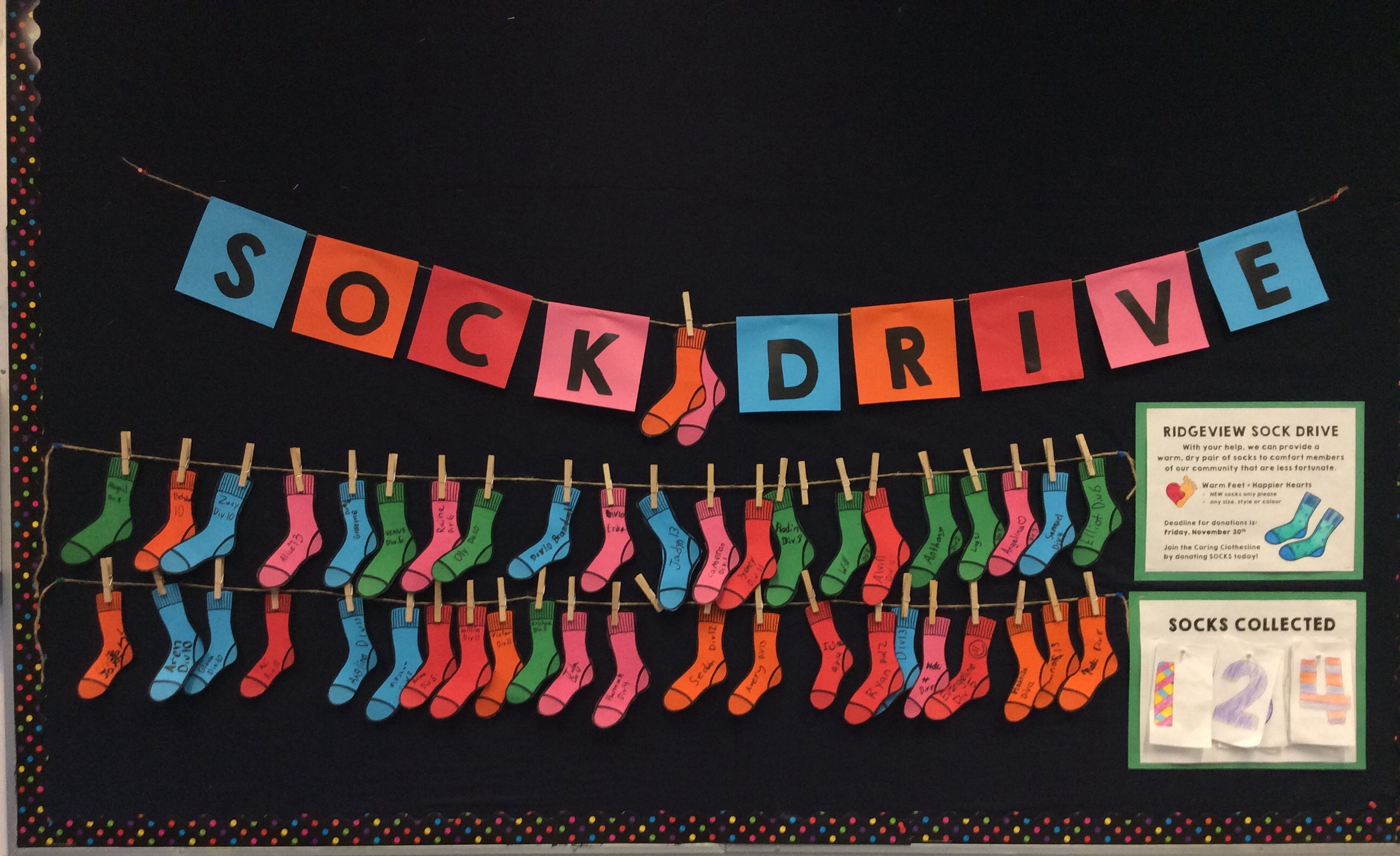 There’s just one more week before the Sock Drive ends. We’re collecting brand new pairs of socks in ALL sizes for donation. Again, if you make a donation, your child will write his or her name on a paper sock to hang on the sock clothesline.