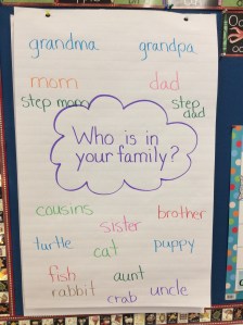 We’ve started our next unit in Social Studies: Family. We’re off to a great start with our Family Sharing. Thank you to the children who’ve already brought in their Family photo. Our first lesson focused on the people in our family. The children did a great job with their brainstorming.