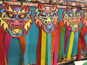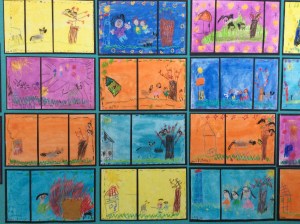 We also finished our pastel watercolour resist paintings of Lon Po Po by Ed Young, which are absolutely spectacular. In these paintings we focused on the setting of the story. The children did an amazing job drawing with pastels and they very much enjoyed using tempera paint pucks for the watercolour wash. We’ve cut and mounted the paintings in panel style which is a traditional Chinese art form.