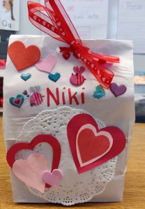 No sooner did we get the snow jackets, gloves, mittens and boots sorted out then it was Valentine’s Day! What a very special day for our children, many of whom had not experienced the giving and receiving of Valentine cards, sweets and mementos. We were touched by the many hand-made Valentines and hand-written cards from the children. The children loved dropping their Valentines in the card holder bags and it was fun for them to peek inside and see how full their own bags were becoming.