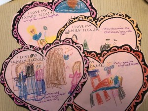 Our return post-holiday found ourselves catching up on work we had set aside. We can’t compete with snow and chocolate! In our study on Families, we read the delightful I Love You book by Todd Parr. We brainstormed about the different ways in which our families show how much they love us. We made these beautiful drawings with our ideas scribed for us by the teachers.