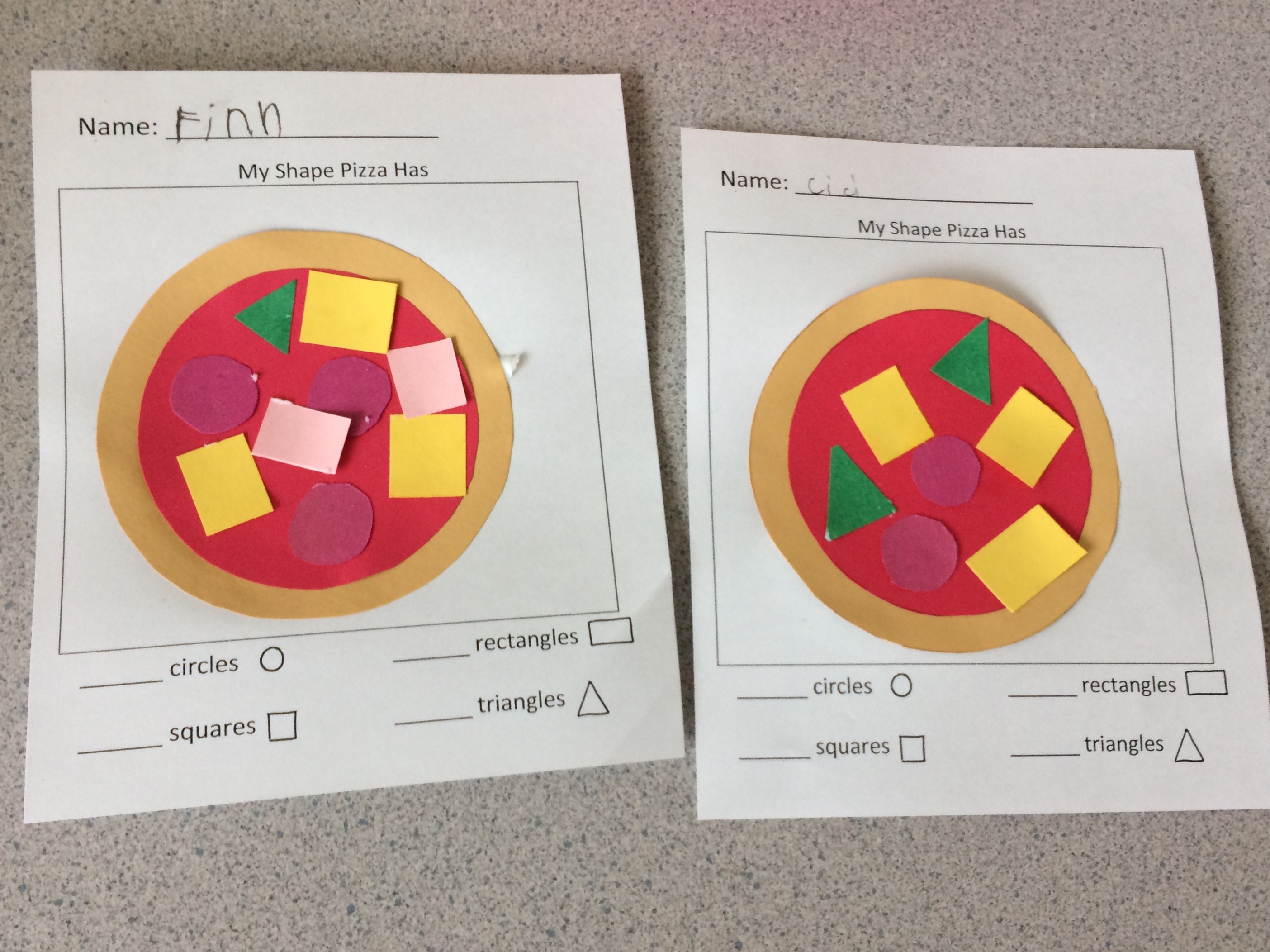 Our UBC Teacher Candidates (TCs) finished up their teaching of Geometry in Math. The children learned about the basic two dimensional shapes (circle, square, rectangle and triangle) and their corresponding three dimensional figures. The unit culminated this week with some fun shape pizzas!