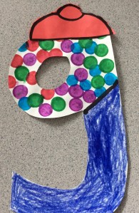 G is a gumball…using bingo marker stampers was new for many children so everyone thoroughly had fun making the gumball machines;